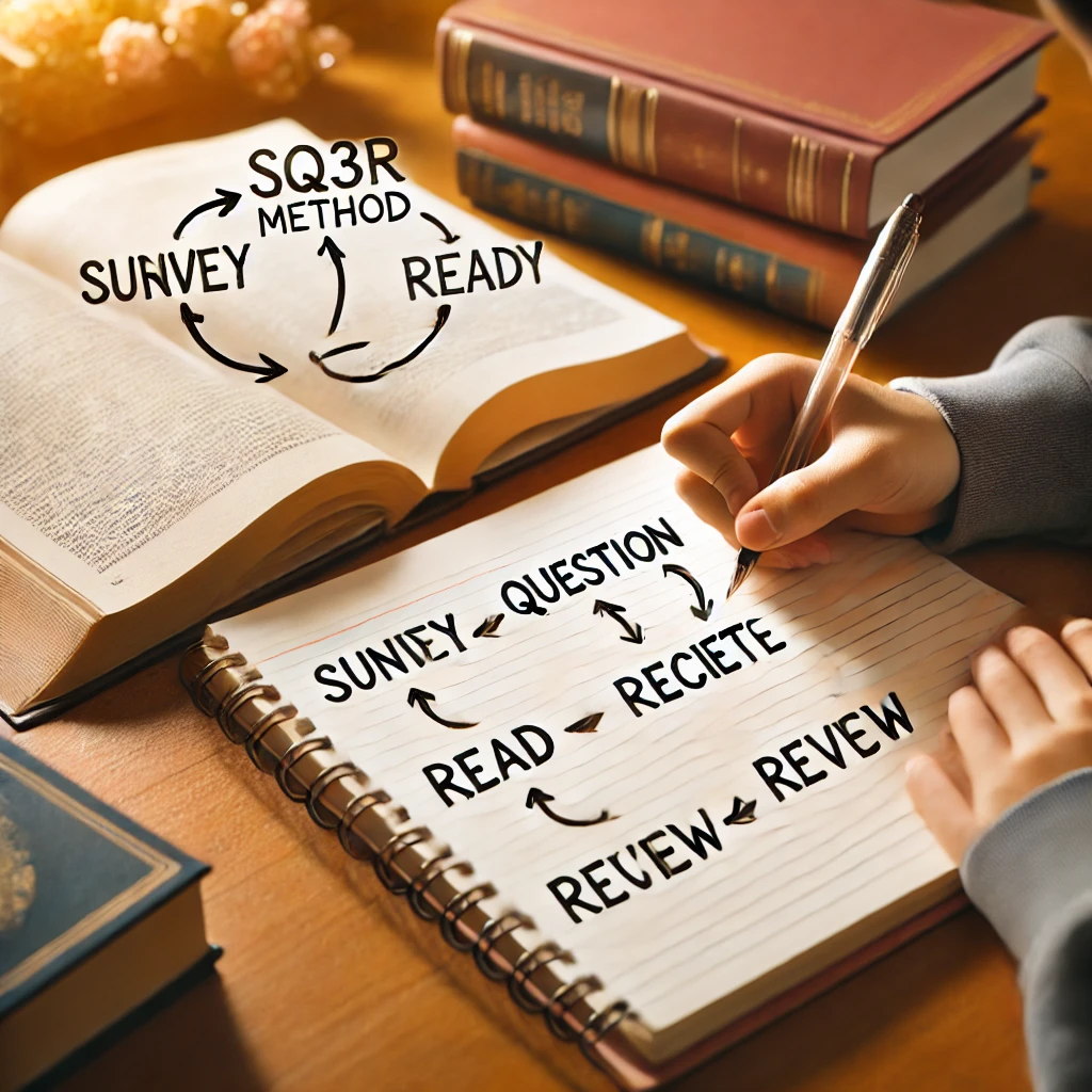 - SQ3R 방법: 훑어보기, 질문하기, 읽기, 암기하기, 복습하기의 5단계를 따라 읽기 자료를 학습하세요.